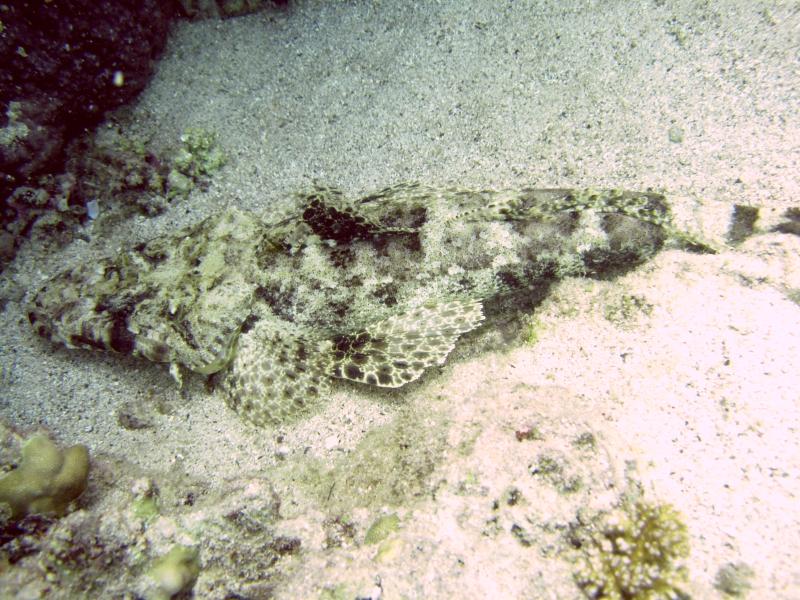 Ha una livrea mimetica, in caso di necessità può nascondersi sotto la sabbia lasciando sporgere solo il muso e gli occhi, i quali, grazie al particolare disegno dell'iride, si confondono, in maniera spettacolare, con l'ambiente circostante.