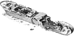 Questa volta siamo il primo gruppo a tuffarsi. Arrivati a circa 20 metri ci stacchiamo dalla cima e ci dirigiamo all’entrata della stiva n°3. Il buio sembra ingoiarci e accendiamo le torce. Appena entrati, sulla sinistra, vediamo il carico di uno dei camion: stivali di gomma. Per la prima volta nella giornata penso che questa nave non trasportava solo oggetti ma aveva anche un equipaggio e nove membri di questo sono morti quel giorno; così pensando seguo Adel, sentendomi un po’ un’intrusa.